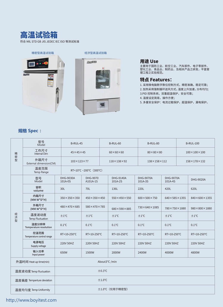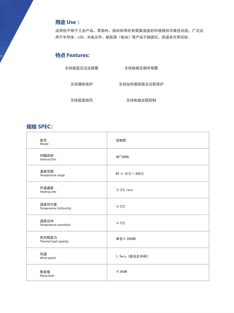 >精密型高溫試驗箱為立式全通道設計,采用強制循環(huán)方式出風,把試驗空間用隔層架分為倆層,每層都保證有均勻的風吹到。(可根據(jù)產(chǎn)品高度加減層數(shù))
